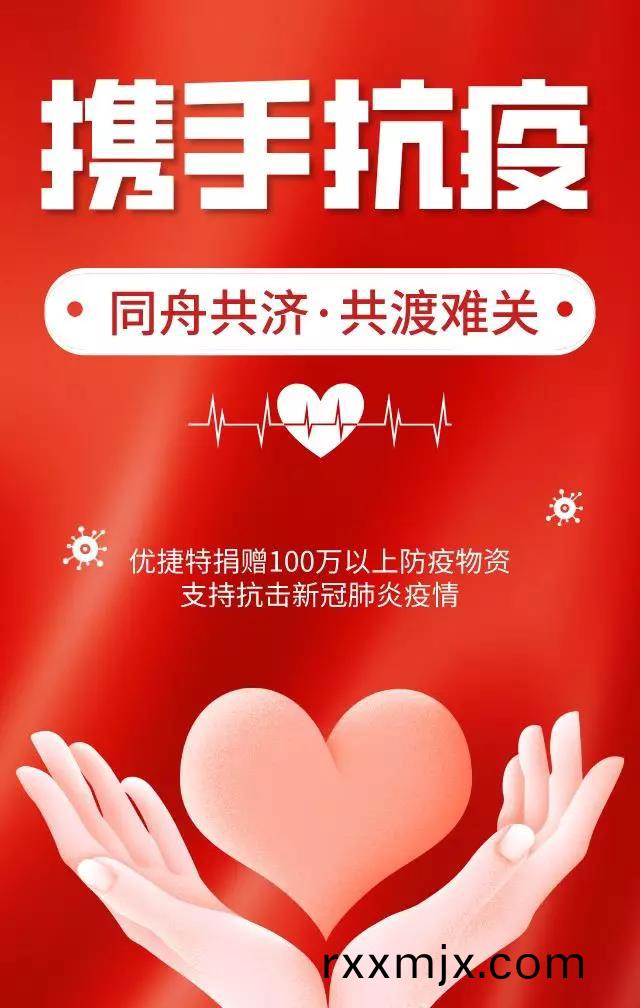 麵對疫(yi)情,我(wo)們全體動員,做抗擊疫情前線的堅強后援。多方籌措的價值超百萬元的防疫物資,將全部用于支援(yuan)抗疫一線單位。優捷特將始終踐行企業社會責任,用自(zi)己的實際行動感(gan)恩迴報社(she)會。